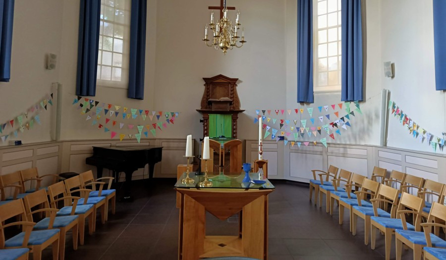 Ouders van school en gemeenteleden kunnen voor elk kind vlaggetjes inleveren met een wens of tekst. De kindernevendienst maakt hiervan een persoonlijke slinger voor elke groep 8-leerling. Deze aanpak bleek zo'n groot succes dat de gemeente het sinds 2020 elk jaar doet. De kleurrijke vlaggenlijnen zijn niet alleen feestelijk, maar ook vol van persoonlijke bemoediging - een tastbare herinnering aan de liefdevolle gemeenschap die achter elke jongere staat.