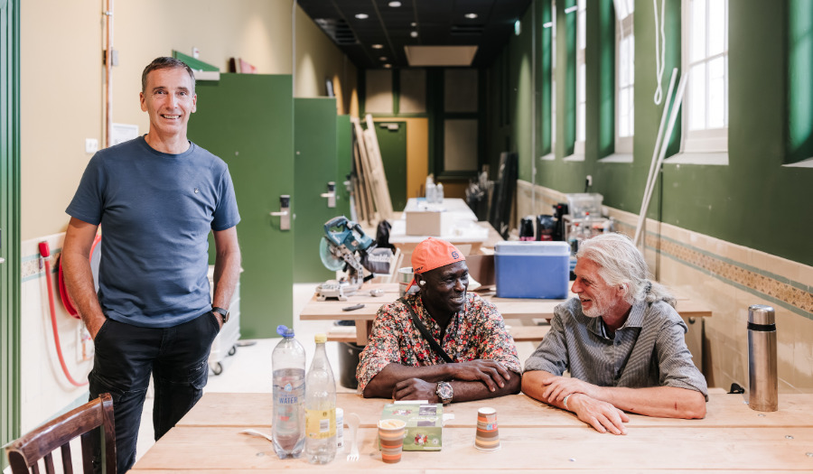 Op de foto: verbouwing van een pand van Tot Heil des Volks in Amsterdam, tot nachtopvang voor daklozen in de winter en hostel in de zomer. De verbouwing is gefinancierd door SKG Geldbeheer.