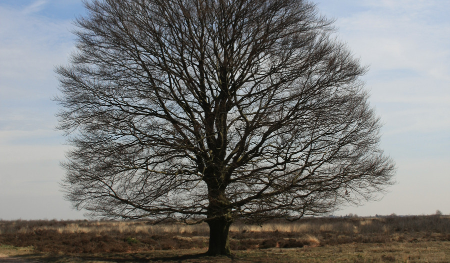 In zijn lied komt die levensboom uit de hof weer terug. Hij wordt gewogen op de rug van de Here Jezus. Zegt iemand dat nog zo: Here Jezus, als in een kindergebed? Welke kant zal het opgaan met die boom, wordt het leven of dood? Daarover gaat het in alle strofen die volgen en waarin allerlei connotaties aan de schepping te ontdekken zijn: de hemel en de aarde en het licht en onze val. Heel het zuchten van de schepping klinkt waar die gestalte gaat, gebukt onder zijn boom. Mens en boom uit Psalm 1 zijn hier samengevallen, één beeld. Het is een wikken en wegen met die boom, een bidden en loven op leven en dood, op vrede of vallen.