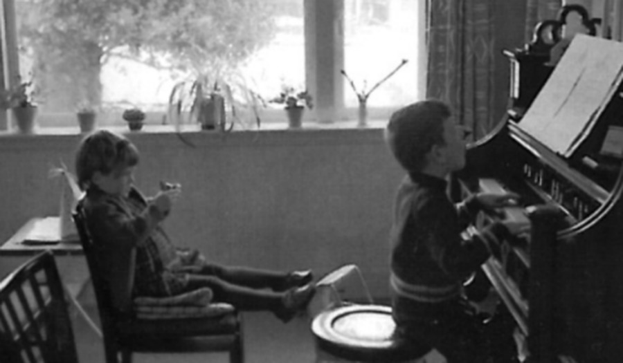 Foto: Marcel Barnard achter het orgel met zijn zusje als kerkganger